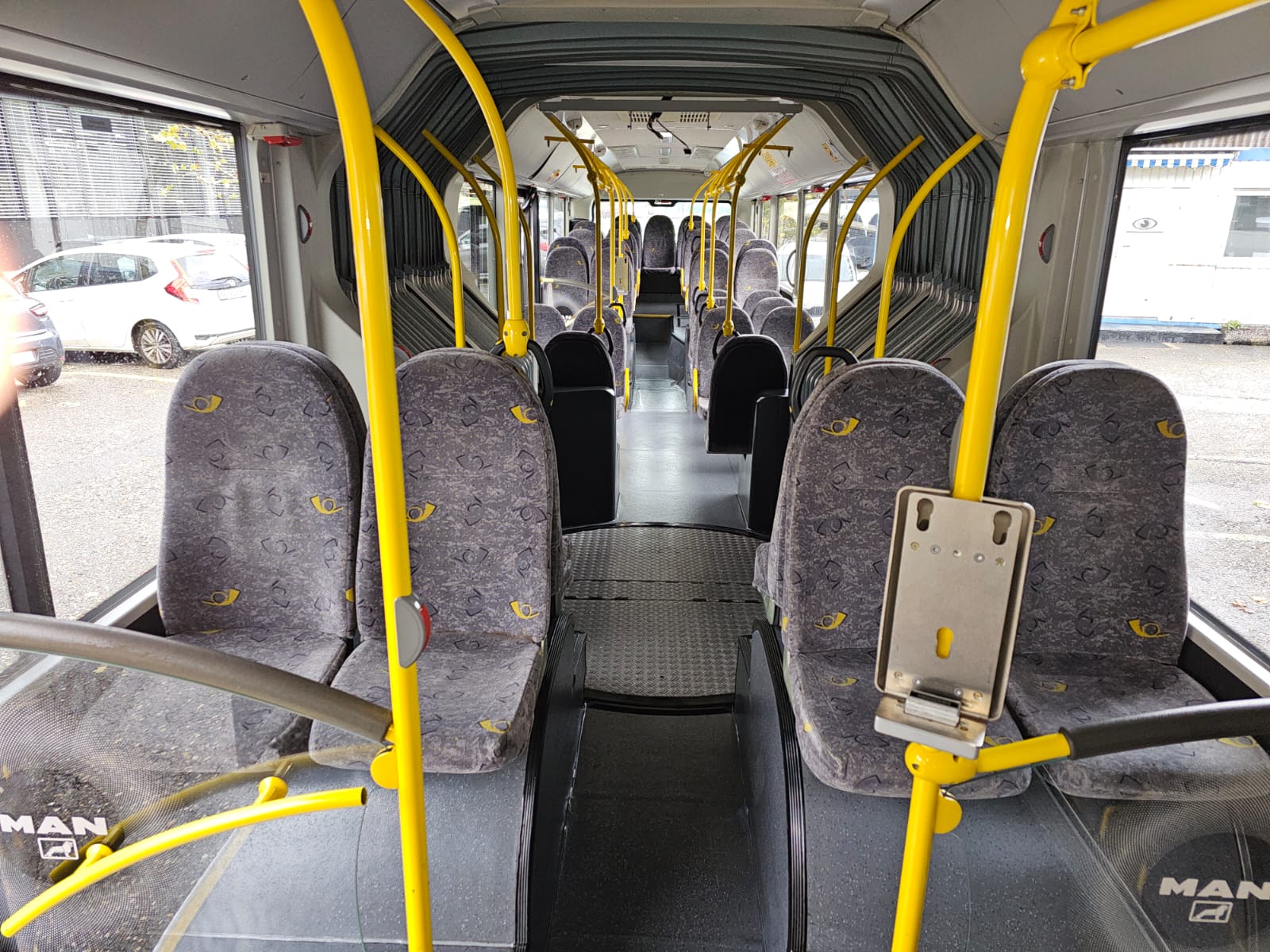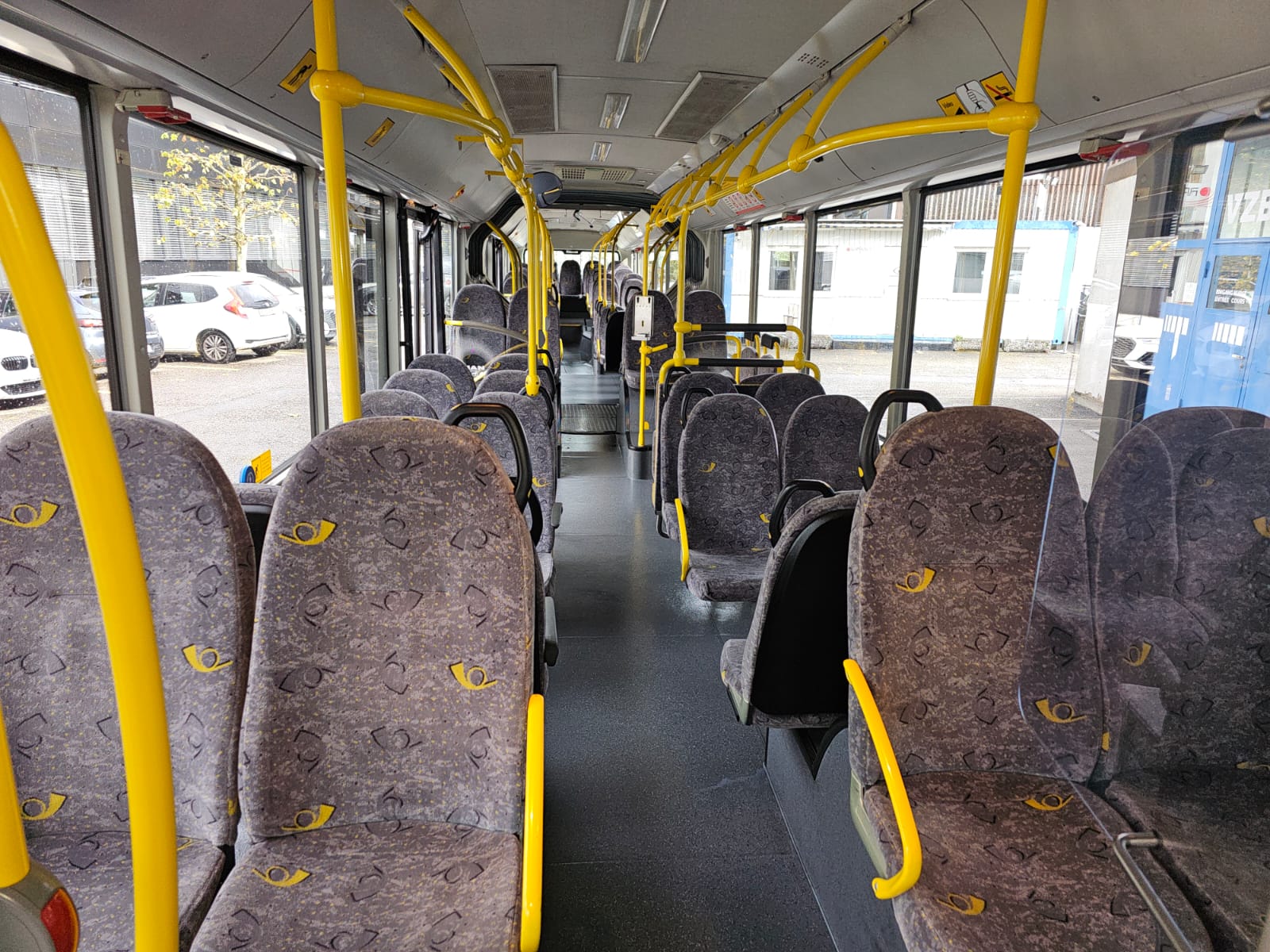 3 Türen, el. Innenschwingtüren, el. Aussenschiebetüren, Stehperron für RS resp. KiWa, Notklappsitze, RS-Rampe ausklappbar Türe 2, Scheiben doppelt, Normalbestuhlung, Sitze hoch/fest, Sitze Stoff, RPF Russpartikelfilter, ABS, ASR, Linienanzeige Front, Linienanzeige Heck, Linienanzeige Seitlich, Tacho Fahrerkarte, Retarder Hydraulisch ZF/Voith, Hebe-/Senkanlage, Dachlucke, Standheizung WEBASTO, Klima Voll, Radio / CD, Sprechanlage