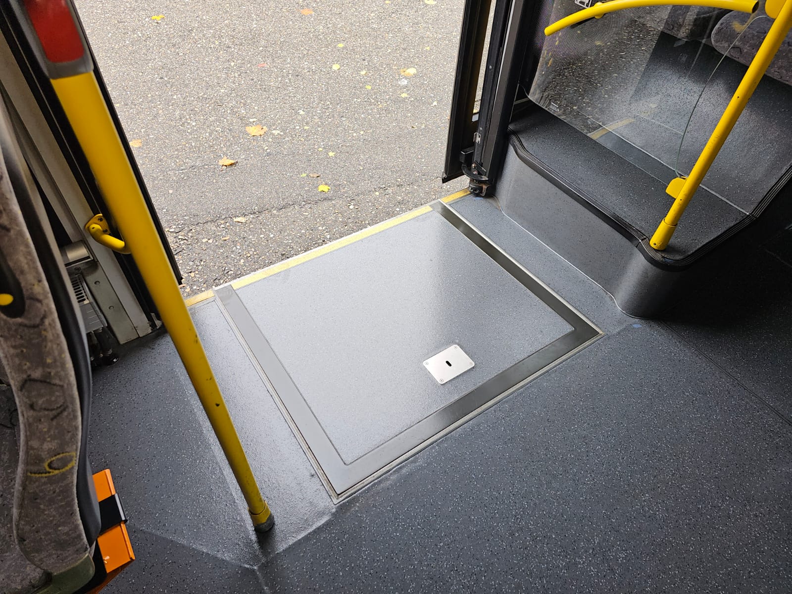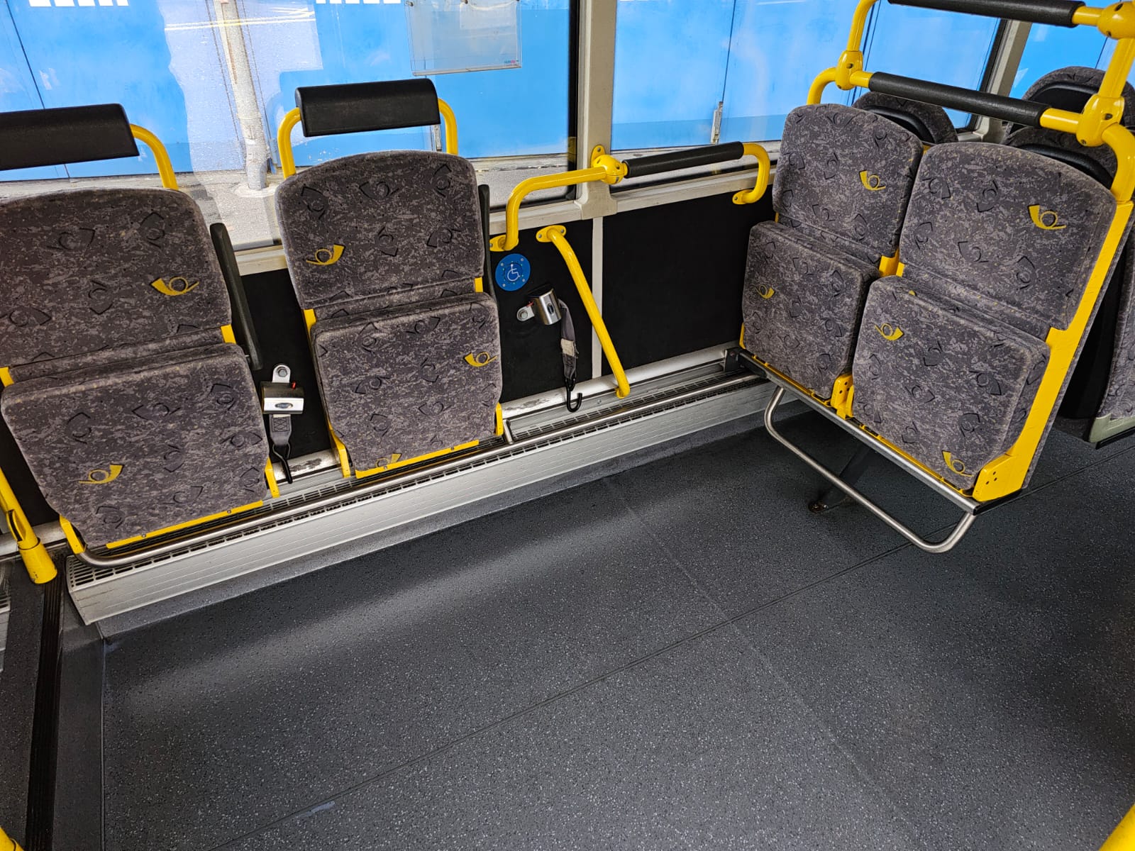 - Stehperron mit 4 (2+2) Notklappsitze und ausklappbarer RS-Rampe mit Platz für 1 RS oder KiWa