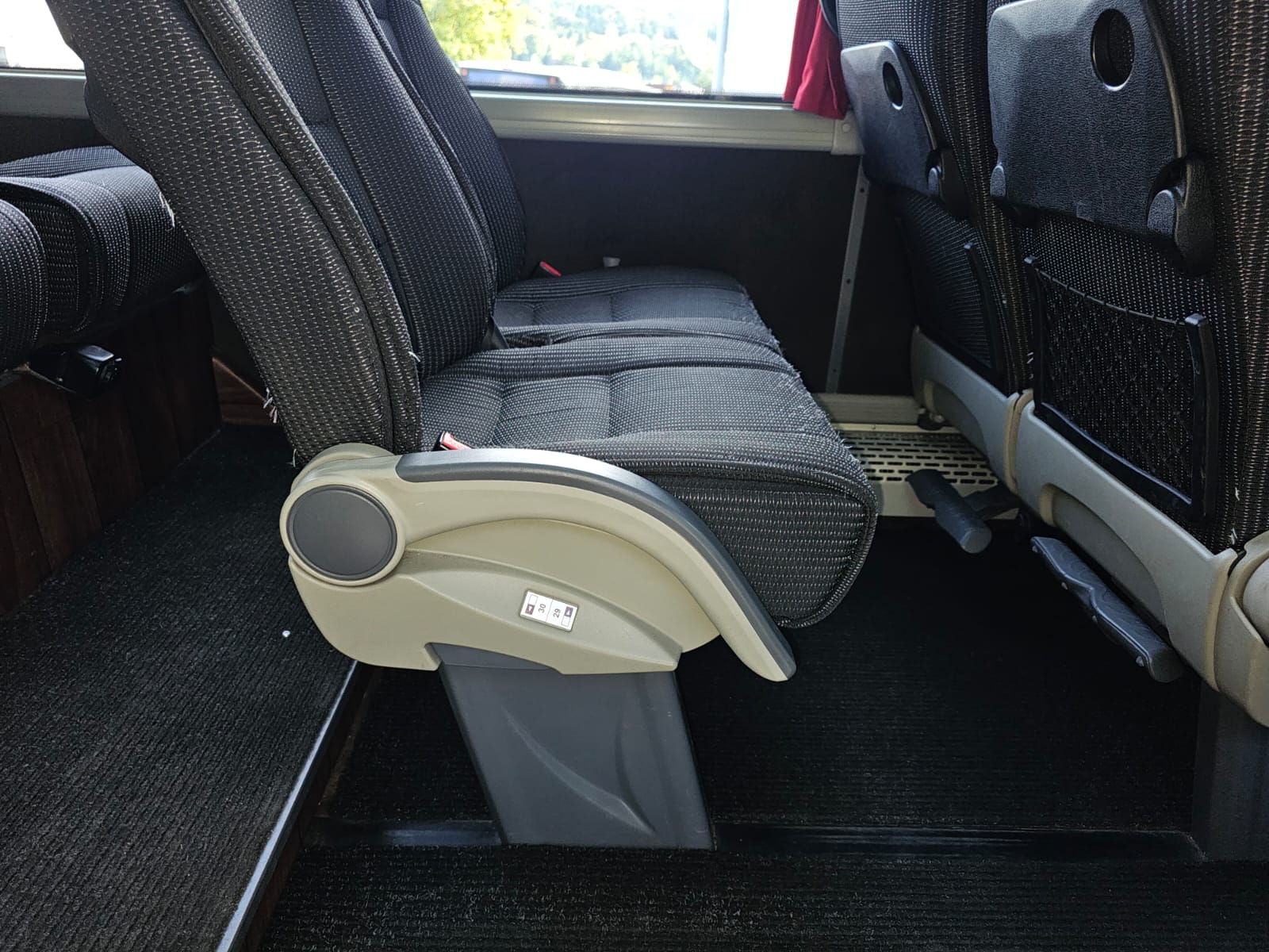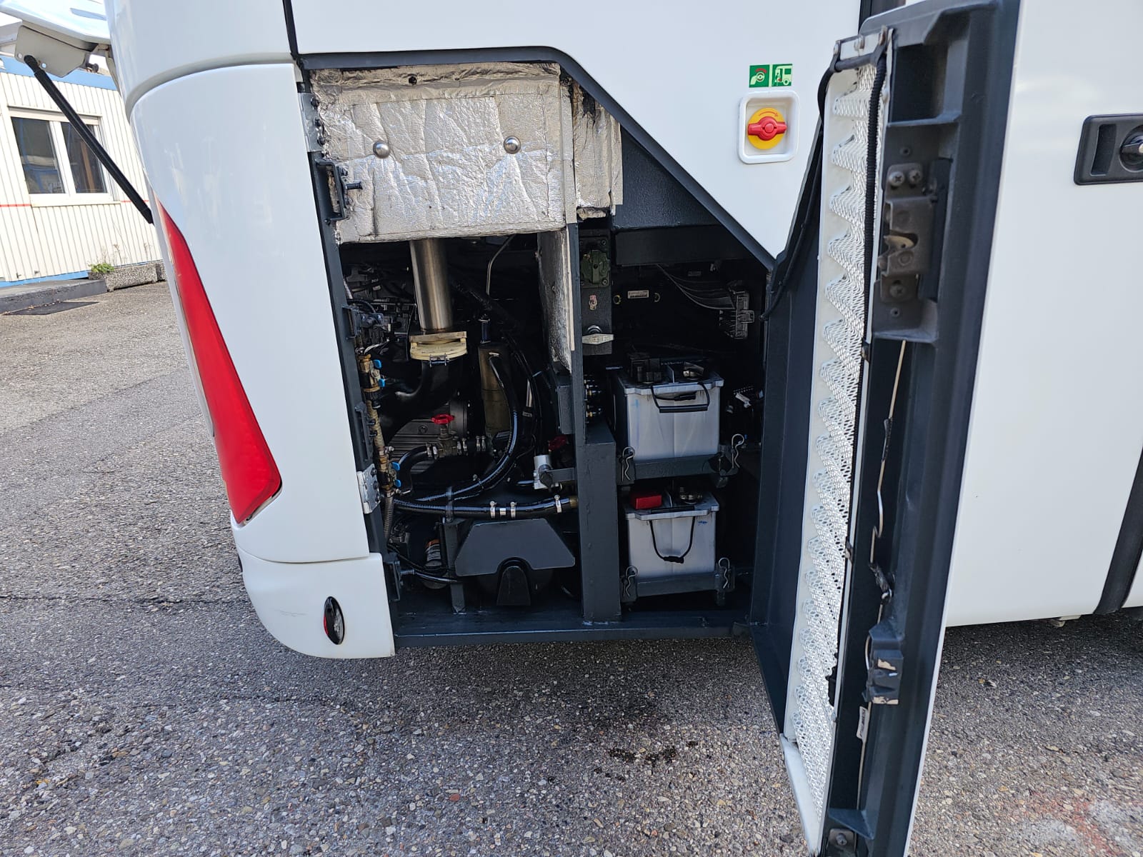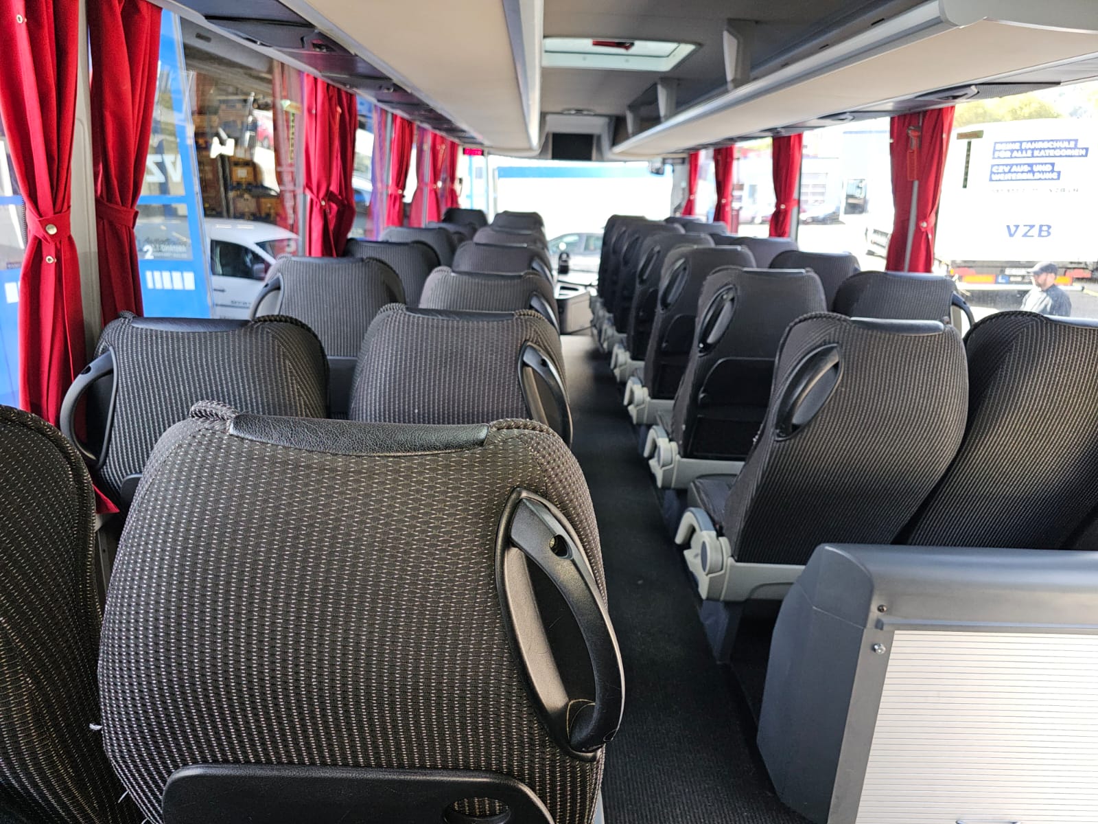 2 Türen, el. Aussenschwingtüren, Zentralveriegelung, Scheiben doppelt, Reisecarbestuhlung, Sitze seitl. -/rückw. verstellbar, Sitze Stoff, Lederkopflatzen eingenäht, Sicherheitsgurten, 2 Punkt, Zeitungsnetze, ABS, ASR, Tempomat, Rückfahrkamera, Tacho Fahrerkarte, Retarder Hydraulisch ZF/Voith, Hebe-/Senkanlage, Dachlucke, Standheizung WEBASTO, Klima Voll, Radio / CD, DVD / Video, Sprechanlage, Video, Frigo 1x, WC chemisch