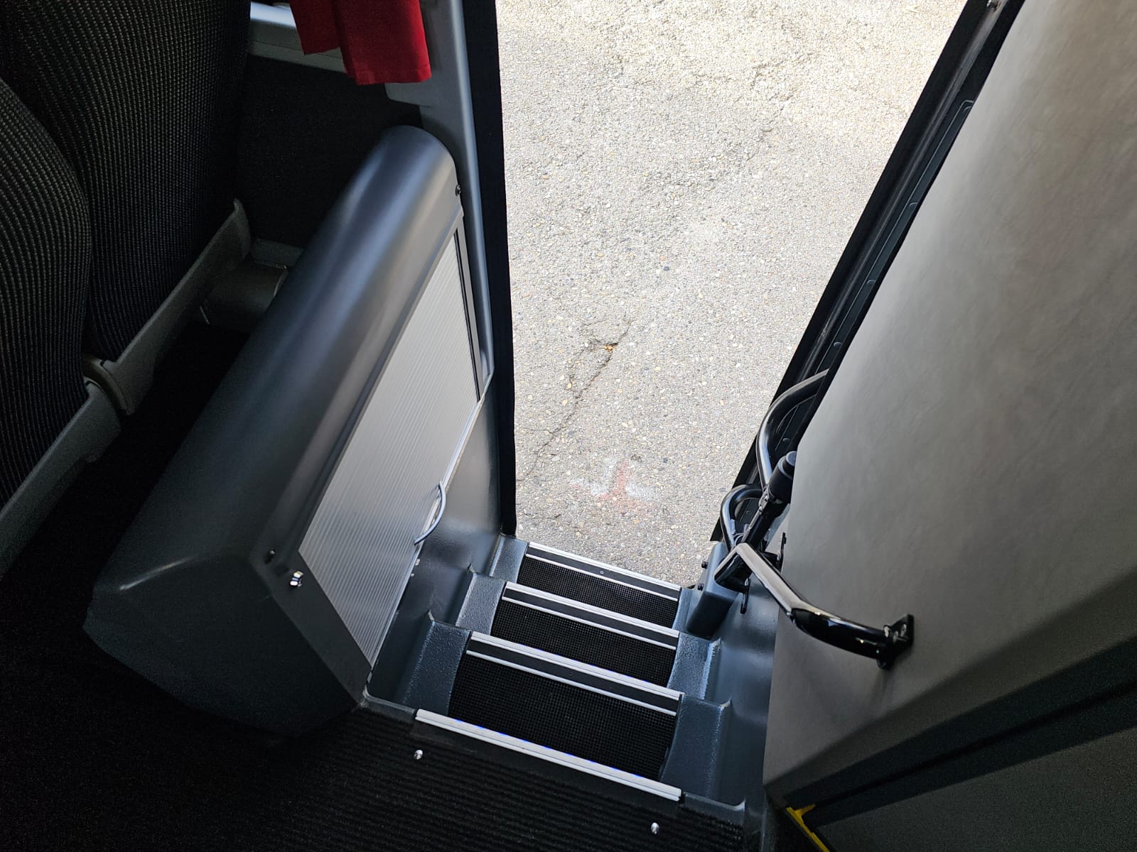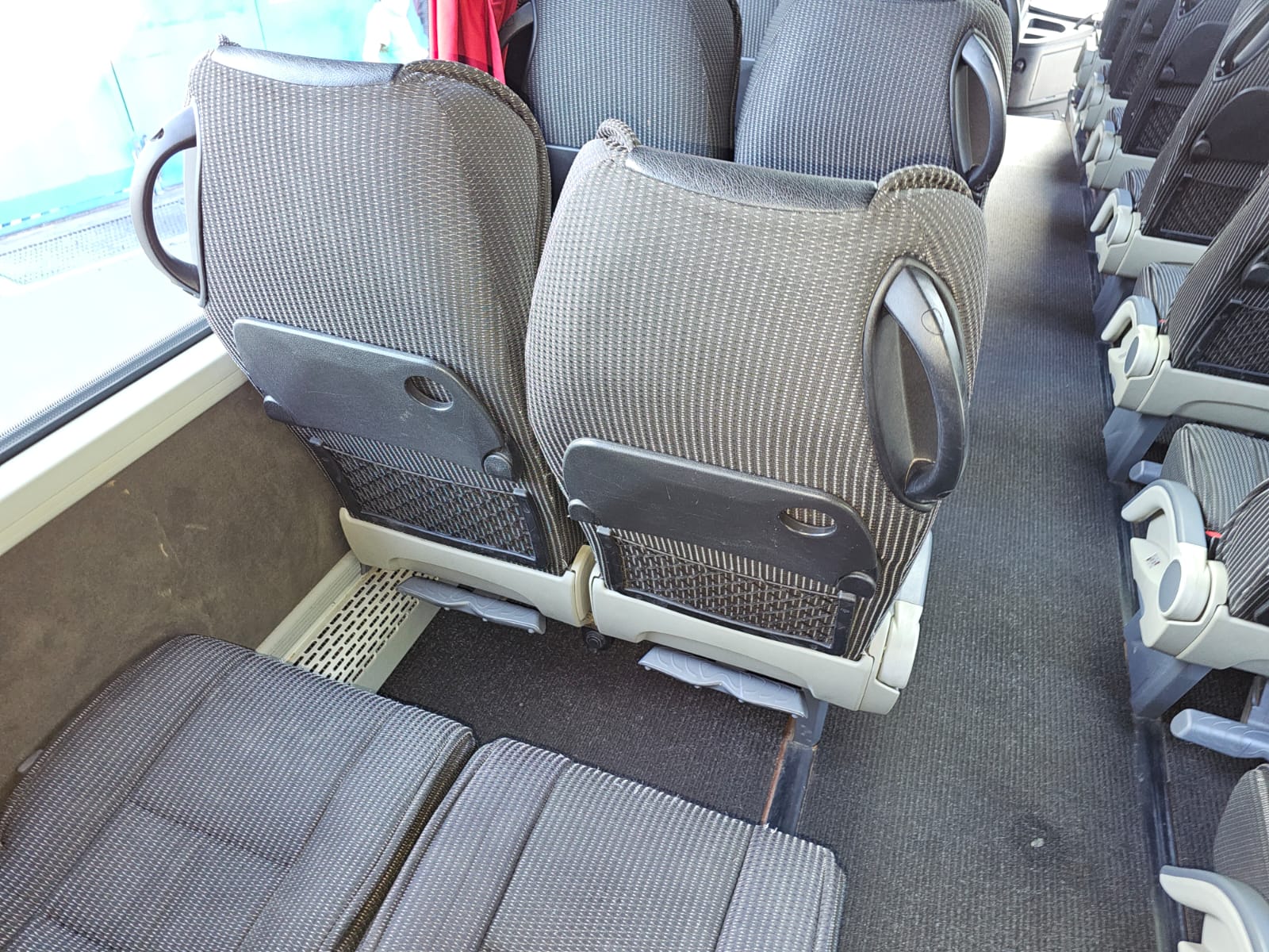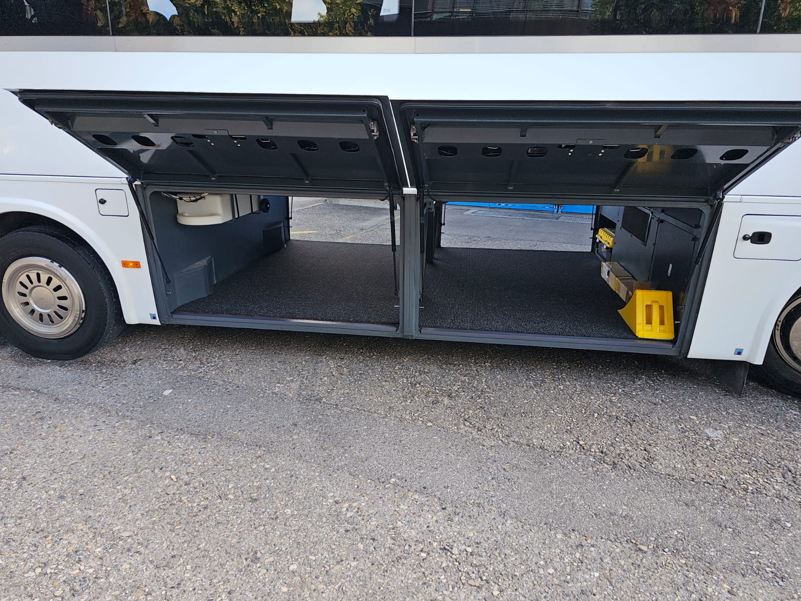 2 Türen, el. Aussenschwingtüren, Zentralveriegelung, Scheiben doppelt, Reisecarbestuhlung, Sitze seitl. -/rückw. verstellbar, Sitze Stoff, Lederkopflatzen eingenäht, Sicherheitsgurten, 2 Punkt, Zeitungsnetze, ABS, ASR, Tempomat, Rückfahrkamera, Tacho Fahrerkarte, Retarder Hydraulisch ZF/Voith, Hebe-/Senkanlage, Dachlucke, Standheizung WEBASTO, Klima Voll, Radio / CD, DVD / Video, Sprechanlage, Video, Frigo 1x, WC chemisch