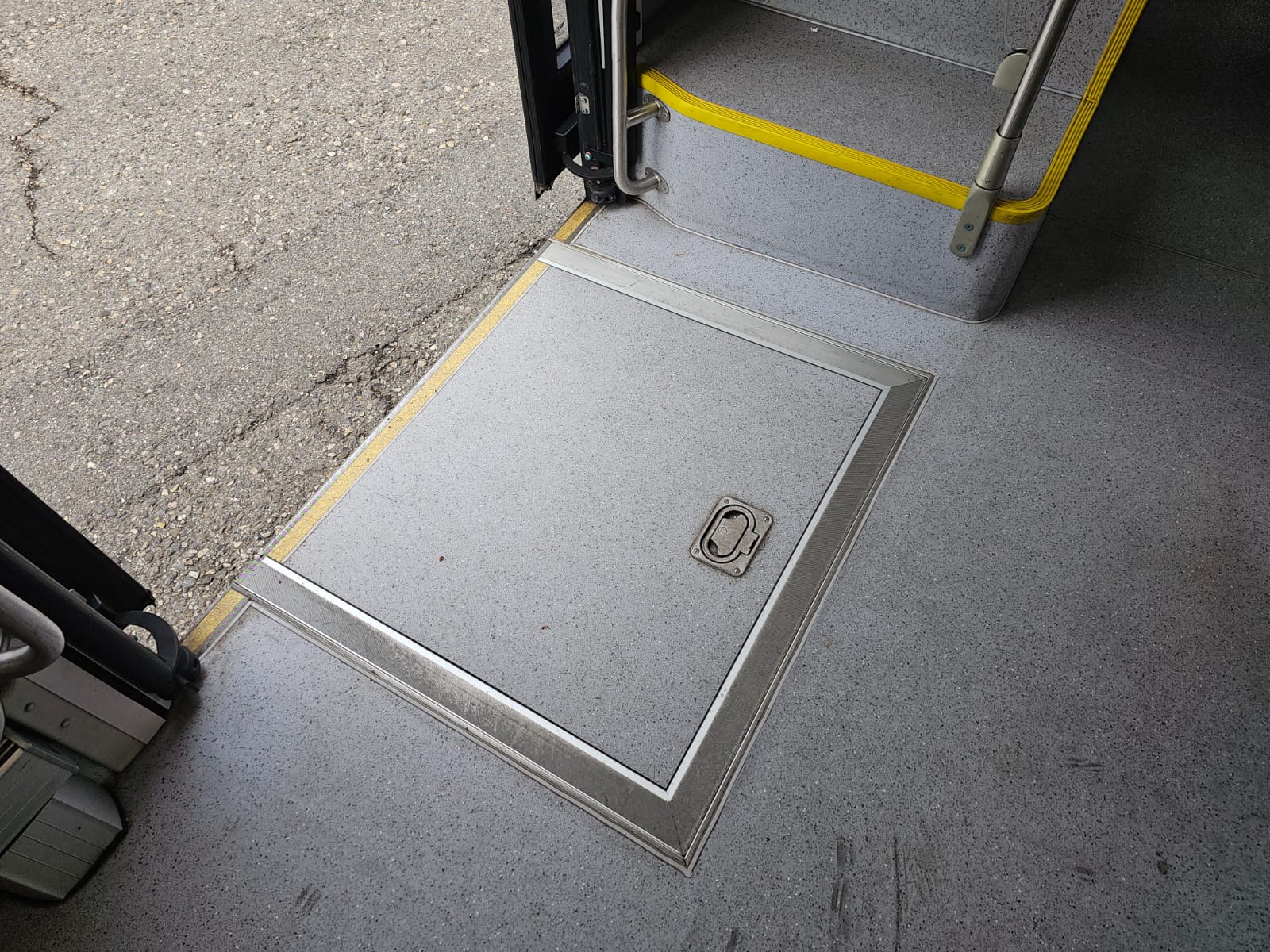 - Stehperron mit ausklappbarer RS-Rampe und 2 Notklappsitze für 1 RS oder KiWa