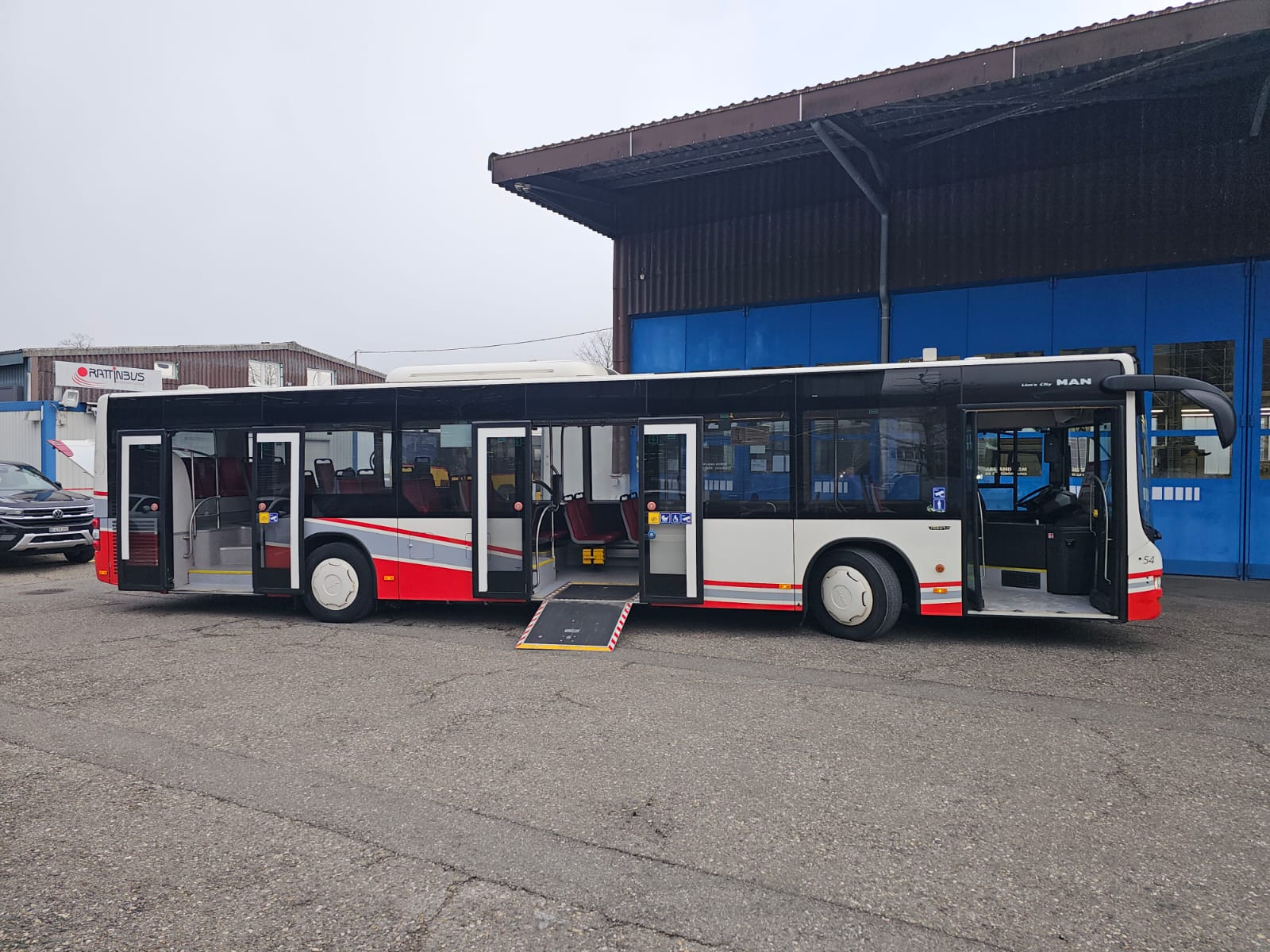 3 Türen, el. Innenschwingtüren, el. Aussenschwingtüren, Stehperron für RS resp. KiWa, Notklappsitze, RS-Rampe ausklappbar Türe 2, Scheiben doppelt, Normalbestuhlung, Sitze hoch/fest, Sitze Stoff, RPF Russpartikelfilter, ABS, ASR, Linienanzeige Front, Linienanzeige Heck, Linienanzeige Seitlich, Restwegschreiber RAG, Retarder Hydraulisch ZF/Voith, Hebe-/Senkanlage, Dachlucke, Standheizung WEBASTO, Klima Voll, Radio / CD, Sprechanlage