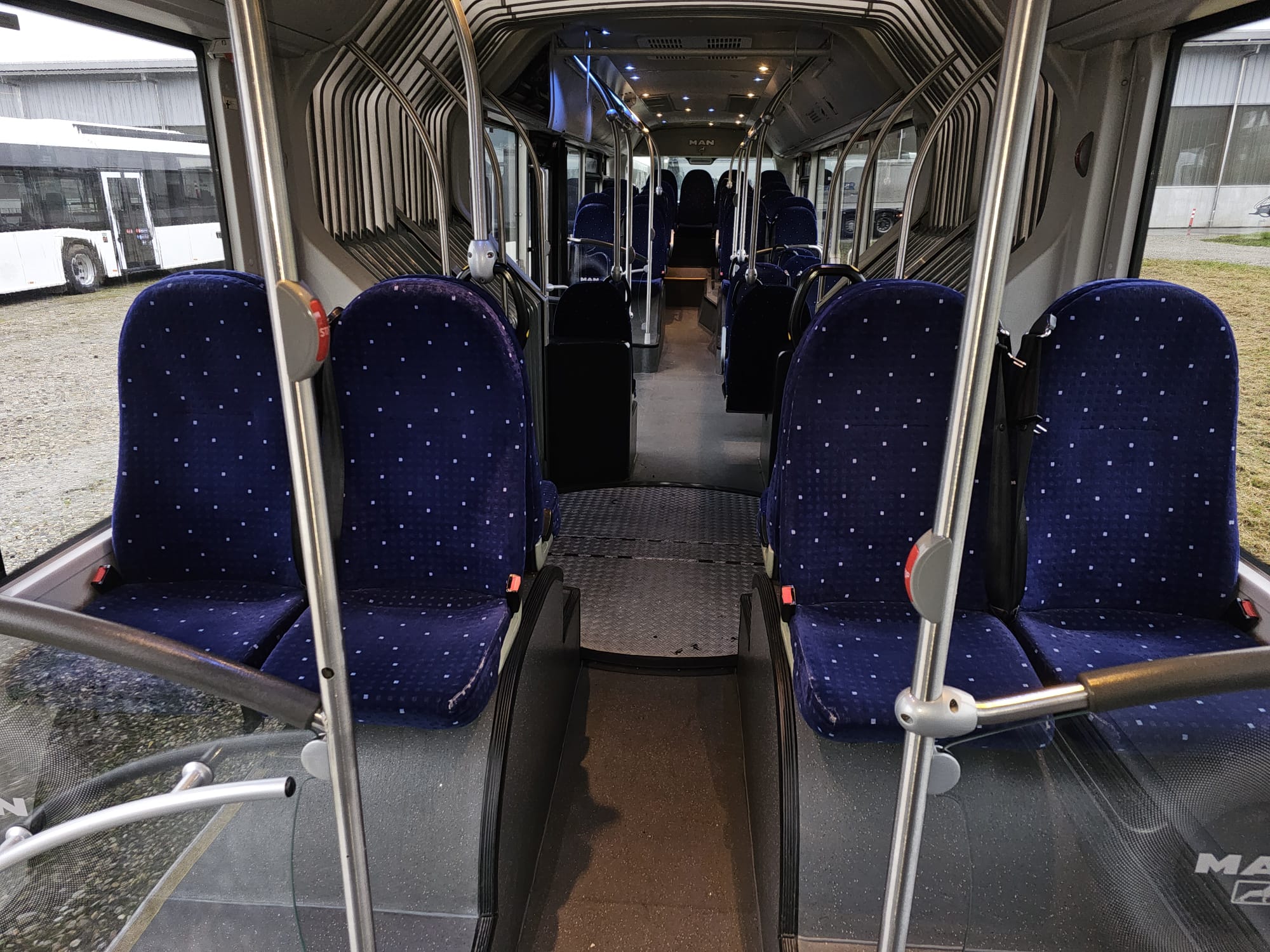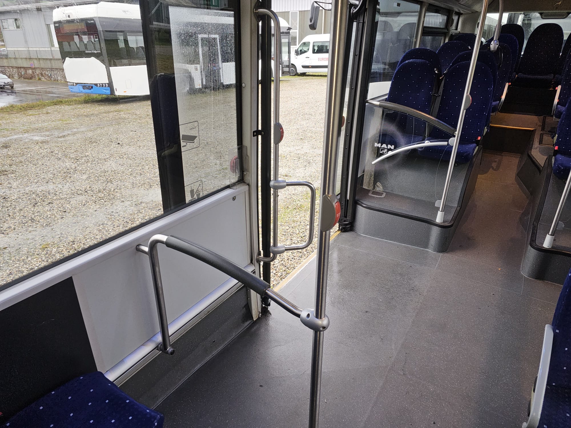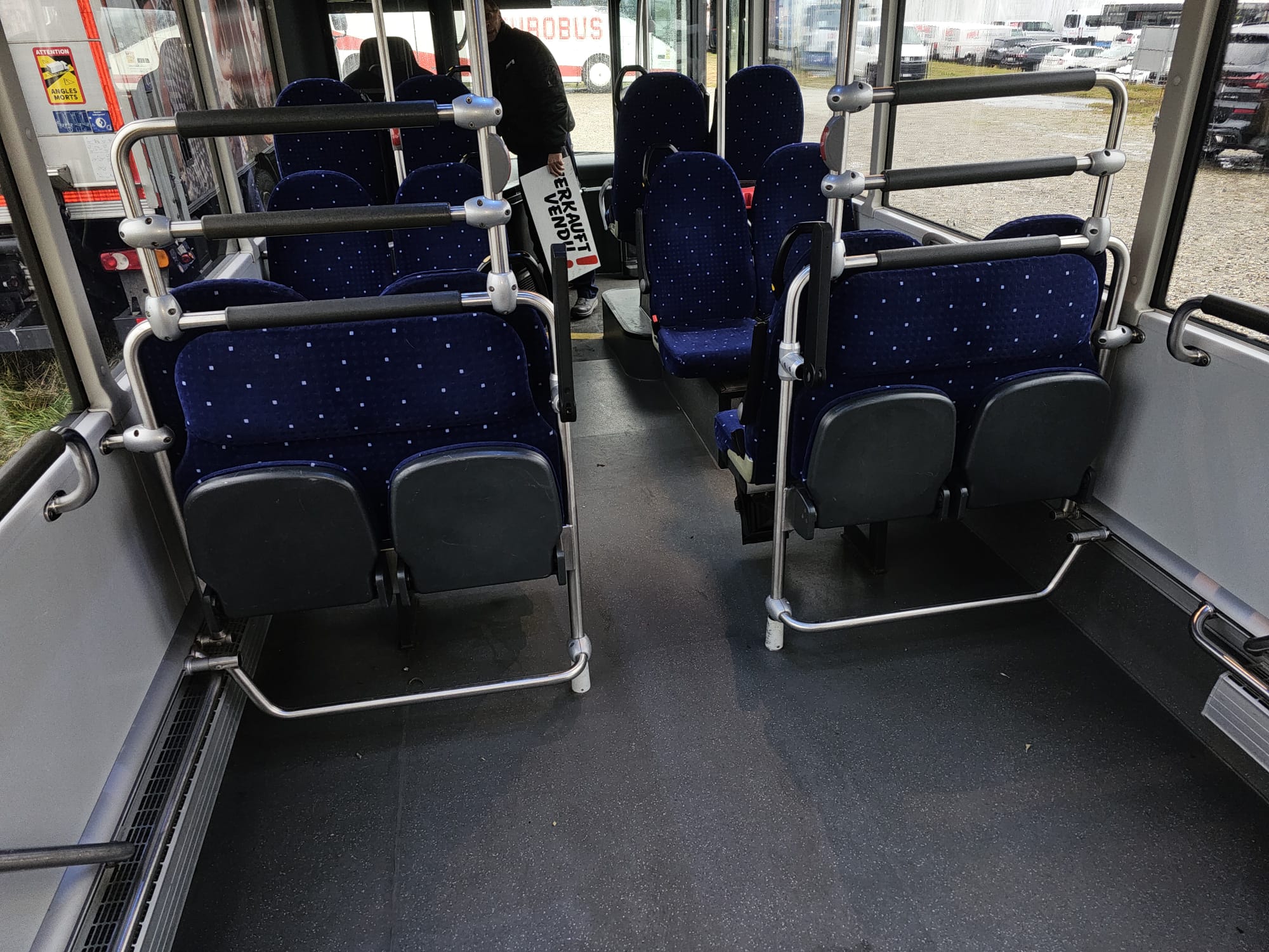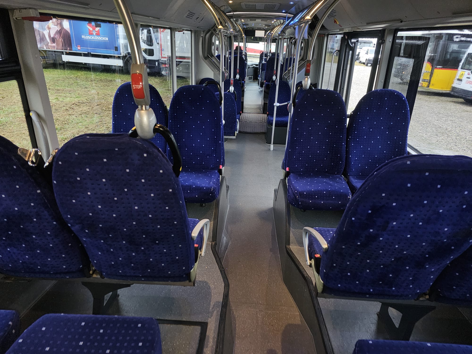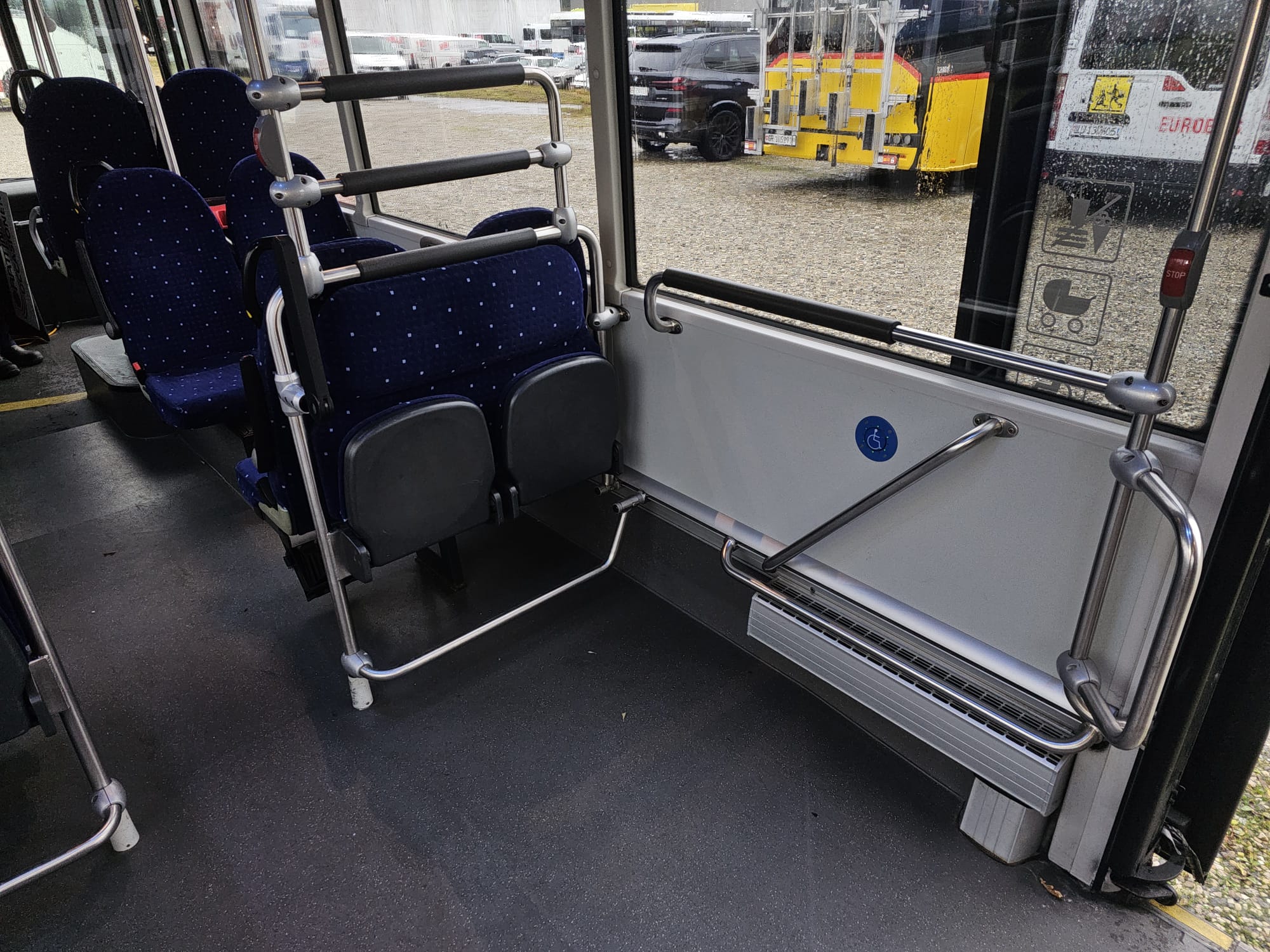 3 Türen, el. Aussenschiebetüren, Stehperron für RS resp. KiWa, Notklappsitze, RS-Rampe ausklappbar Türe 2, Scheiben doppelt, Normalbestuhlung, Sitze hoch/fest, Sitze Stoff, Sicherheitsgurten, 3 Punkt, RPF Russpartikelfilter, ABS, ASR, Linienanzeige Front, Linienanzeige Heck, Linienanzeige Seitlich, Rückfahrkamera, Tacho Fahrerkarte, Restwegschreiber RAG, Retarder Hydraulisch ZF/Voith, Hebe-/Senkanlage, Dachlucke, Standheizung WEBASTO, Klima Voll, Radio / CD, Sprechanlage