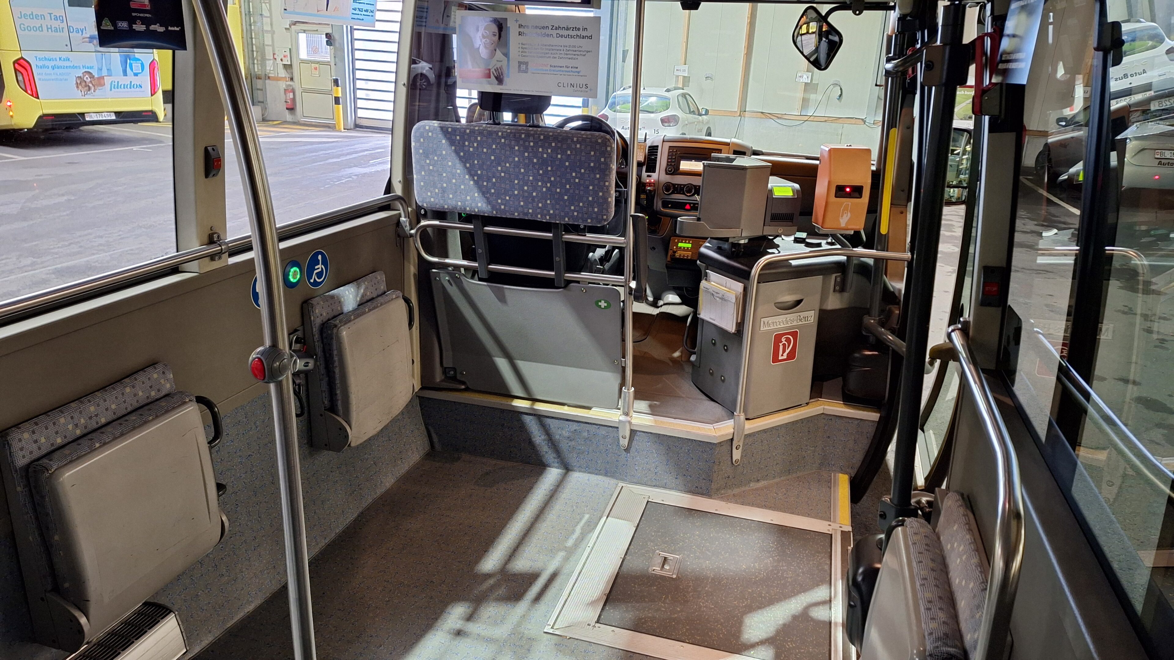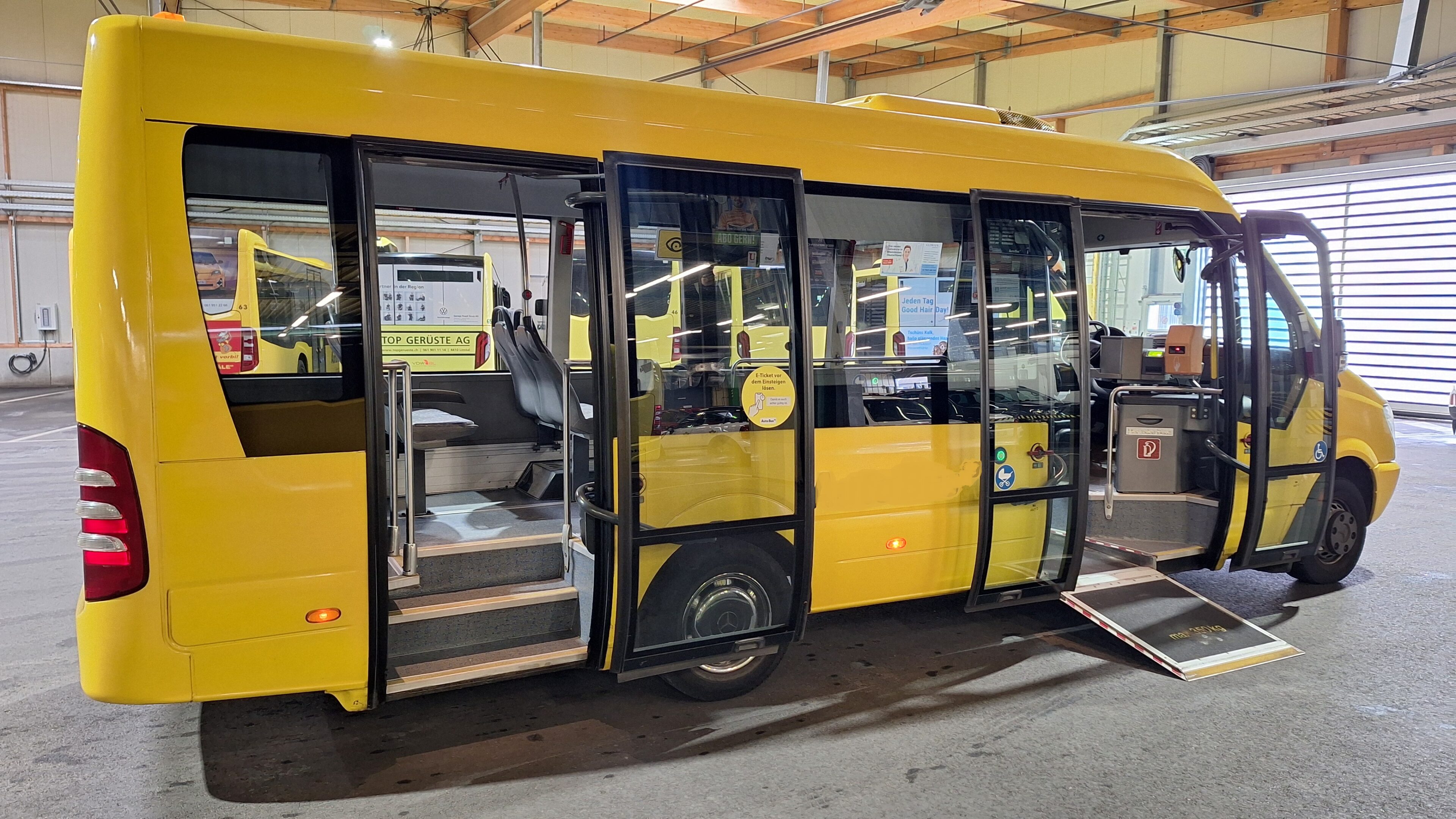 3 Türen, el. Aussenschwingtüren, Stehperron für RS resp. KiWa, Notklappsitze, RS-Rampe ausklappbar Türe 2, Scheiben einfach, Normalbestuhlung, Sitze hoch/fest, Sitze Stoff, RPF Russpartikelfilter, ABS, ASR, Tempomat, Linienanzeige Front, Tacho Fahrerkarte, Retarder Elektrisch Telma, Standheizung WEBASTO, Klima Voll, Radio / CD, Sprechanlage